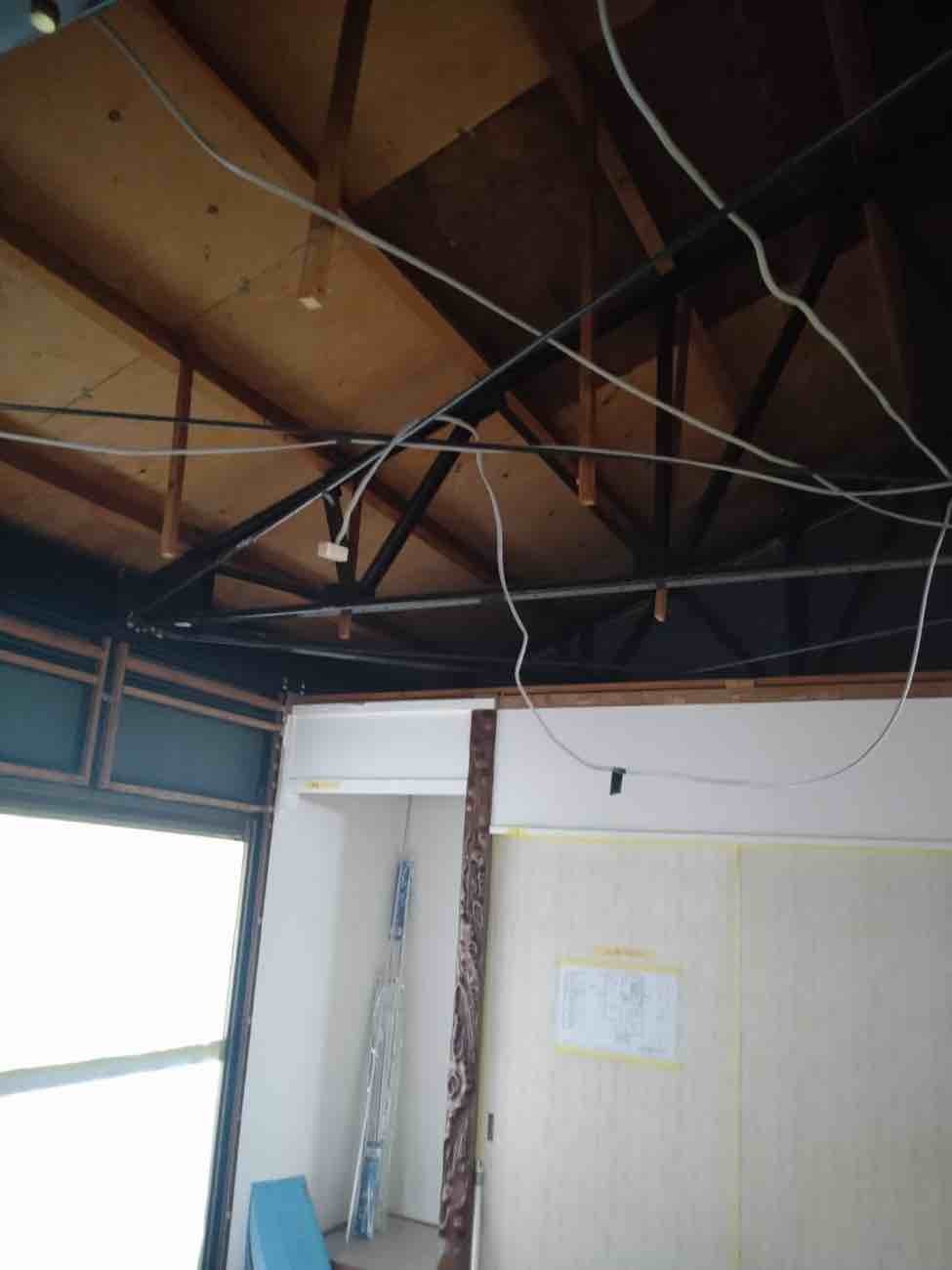 鉄骨が露出するまで天井を解体し、新しく天井組をさせていただき、