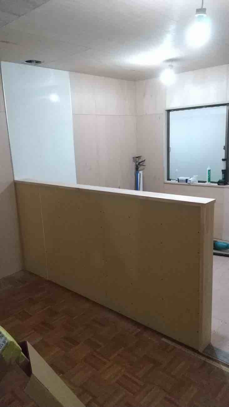 下の写真は、キッチン前壁も造作し、キッチン取付の前準備をしているところです。