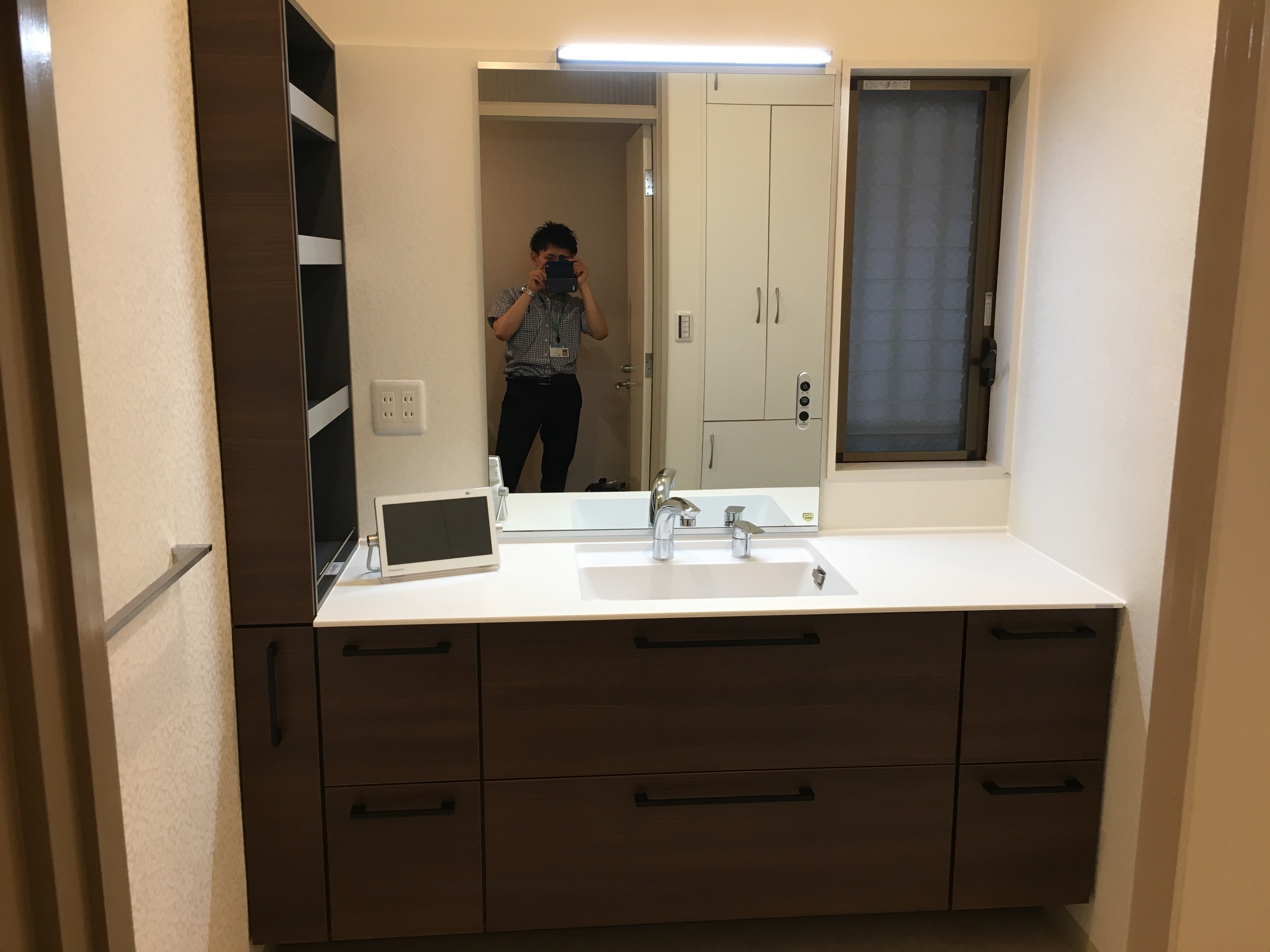 洗面台はTOTOさんのオーダーサイズで作れるエスクアを取り付けさせていただきました!