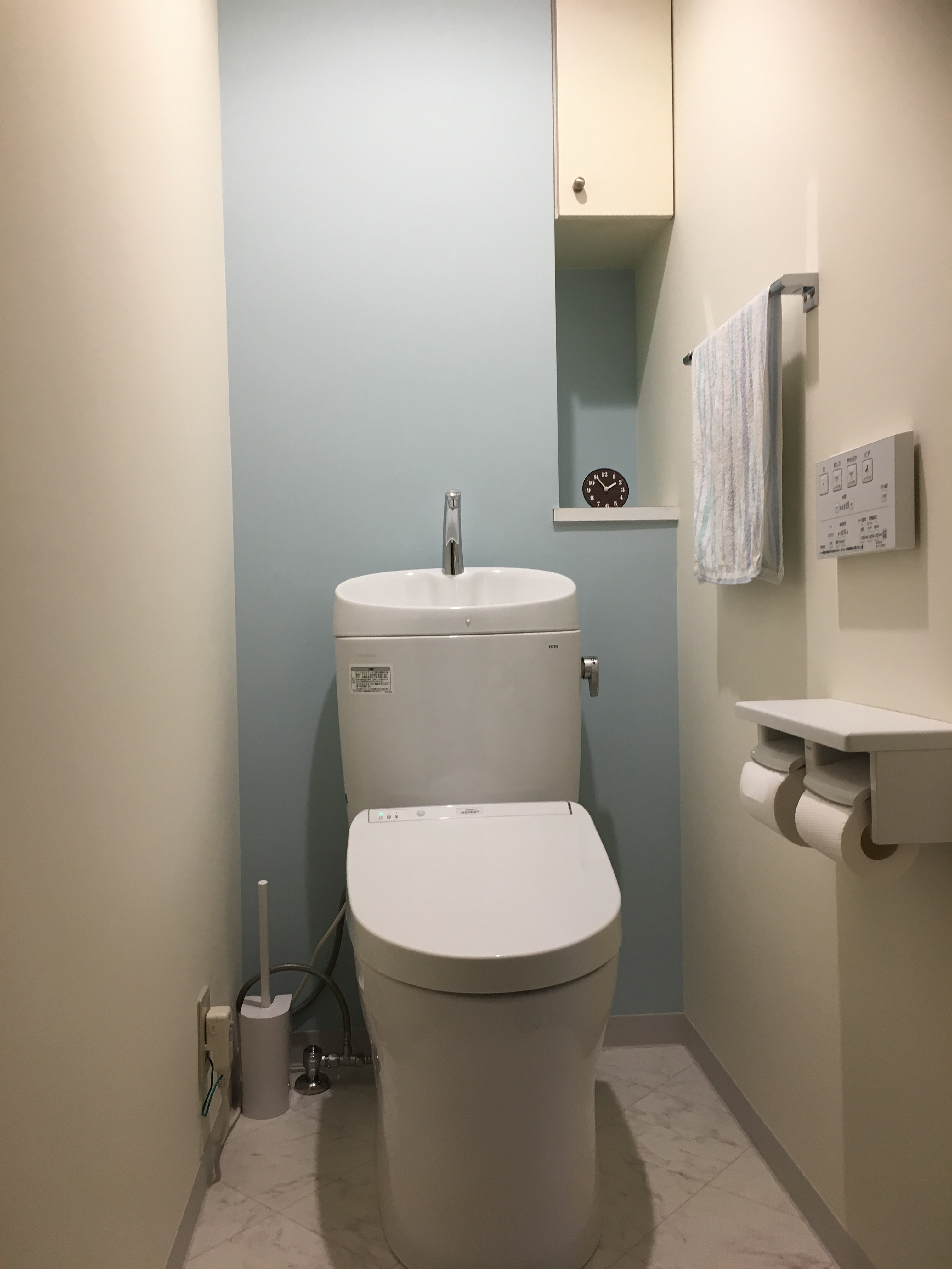 また洗面のキャビネットはお客様がご自身で用意され、そちらを取付させていただきました!
