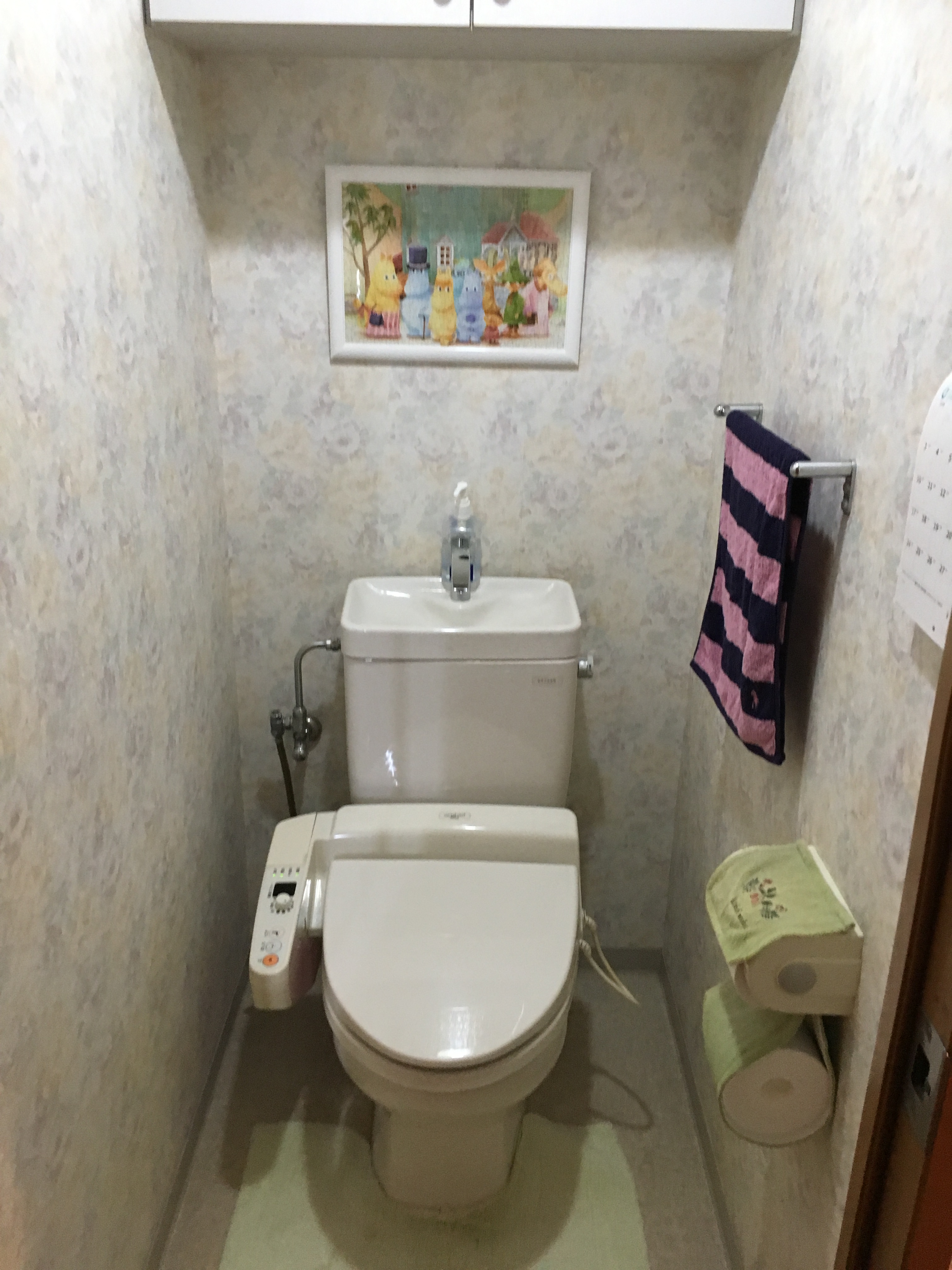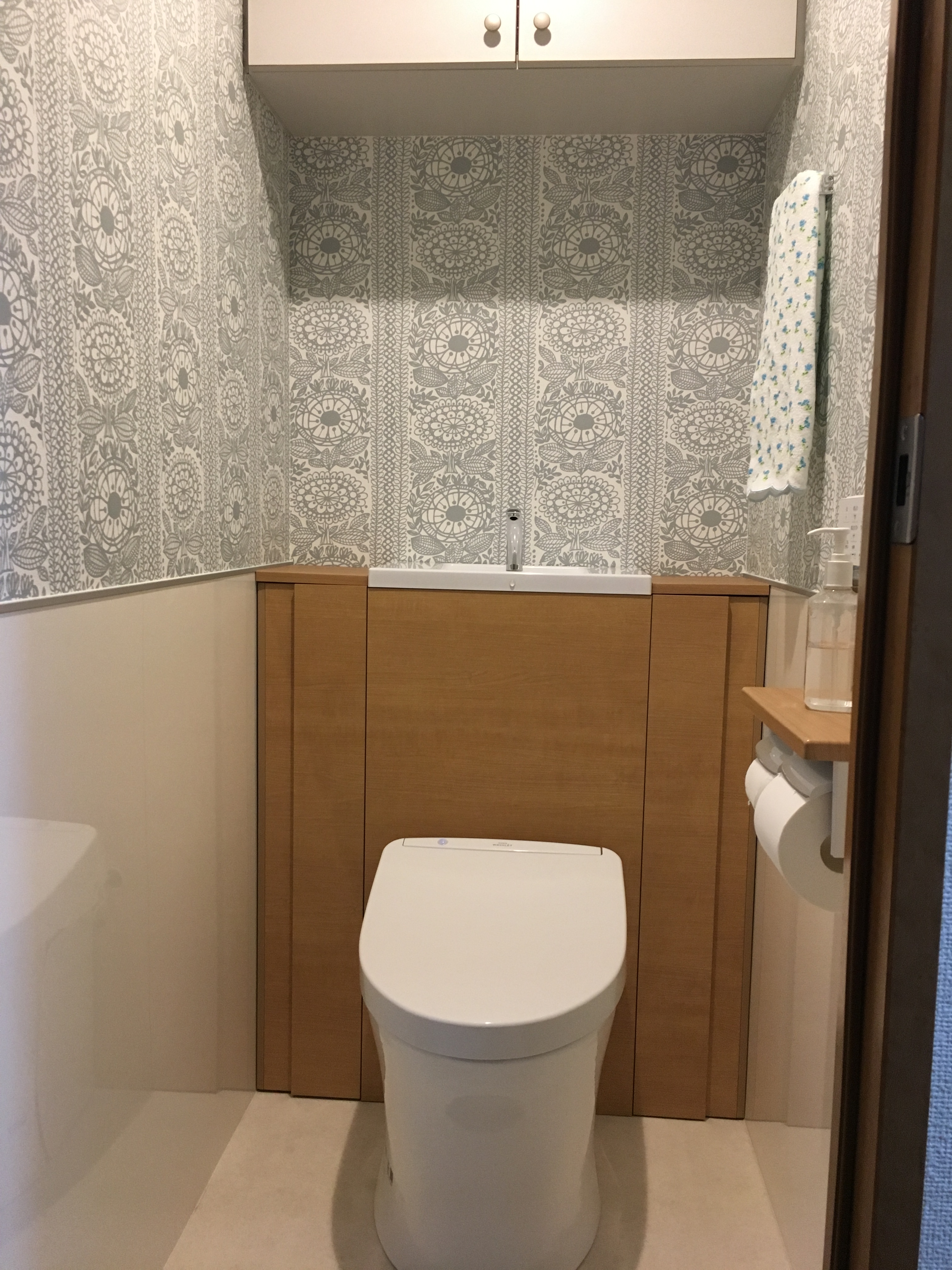 トイレは給水管やコンセントが隠れ、収納も増えるTOTOさんのレストパルを取り付けさせていただきました!
