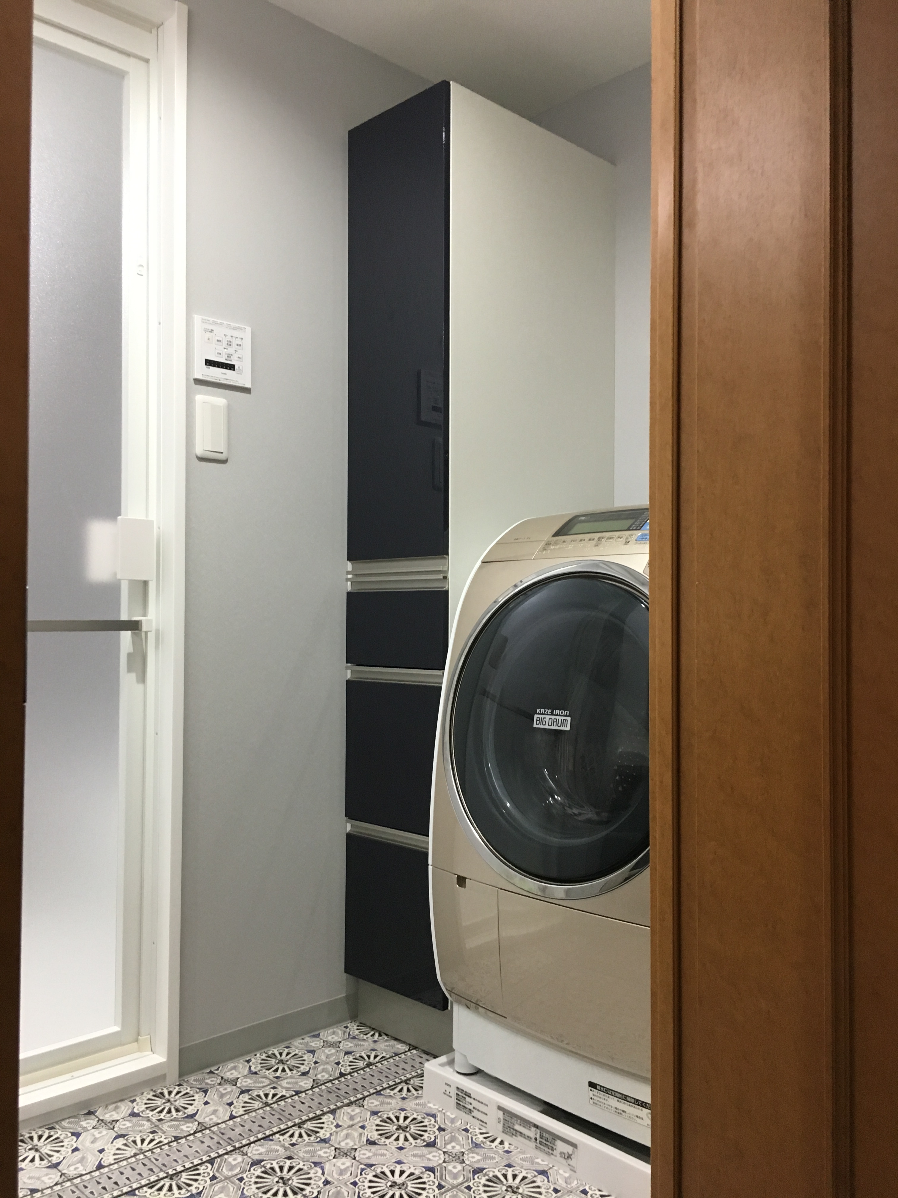 洗濯防水パンのサイズも80cm→74cmにし、大きな収納を新設することができました!(^^)!
