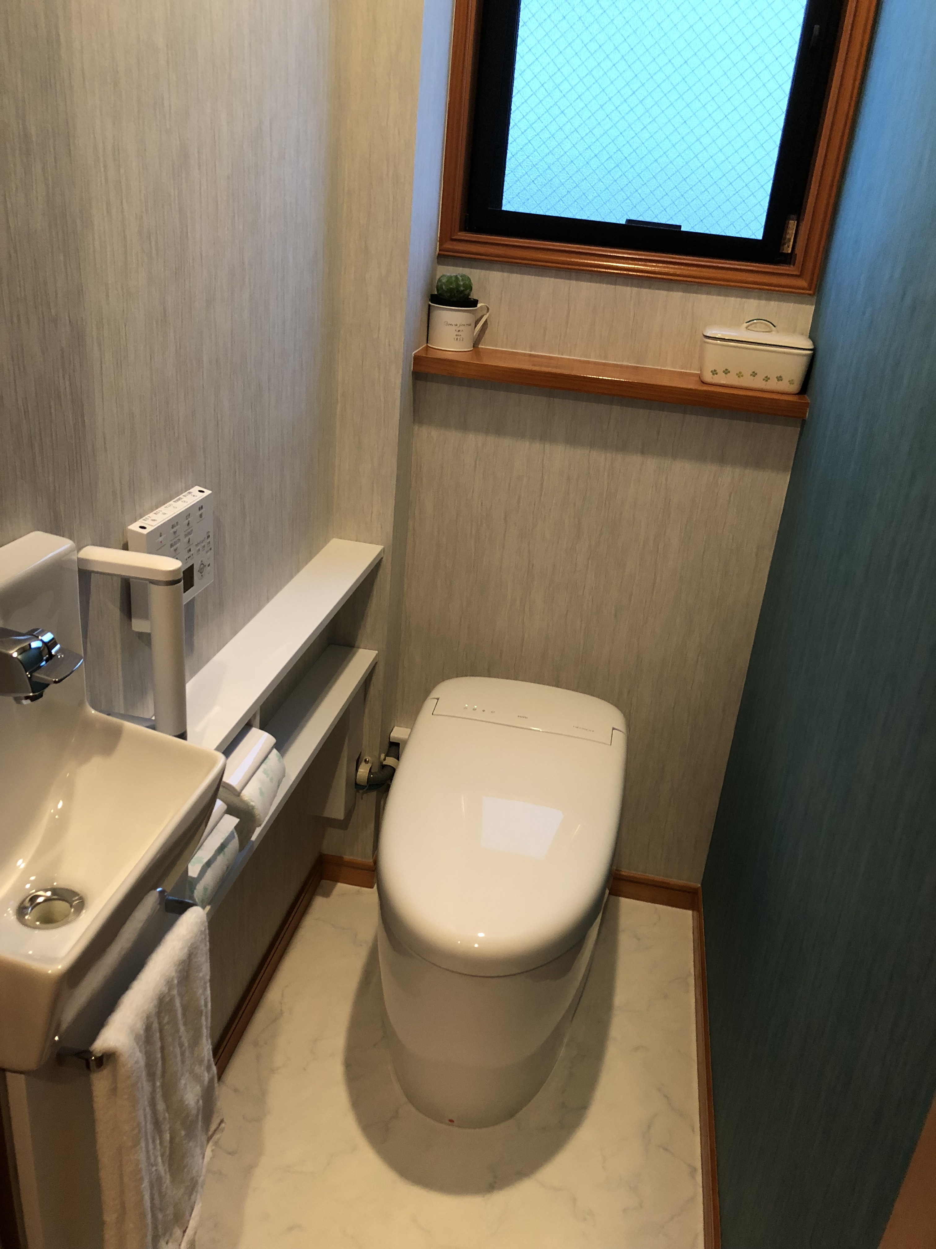 便器後ろの手洗キャビネットが無くなった分広く感じるようになりました。