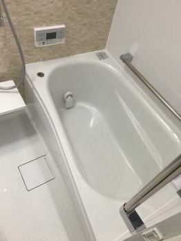 入口と浴槽横に手すりを取り付けて安全に使ってもらえるお風呂になりました!