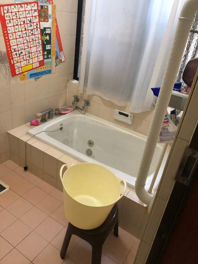 リフォーム前はタイル貼りのお風呂で、窓が大きく、