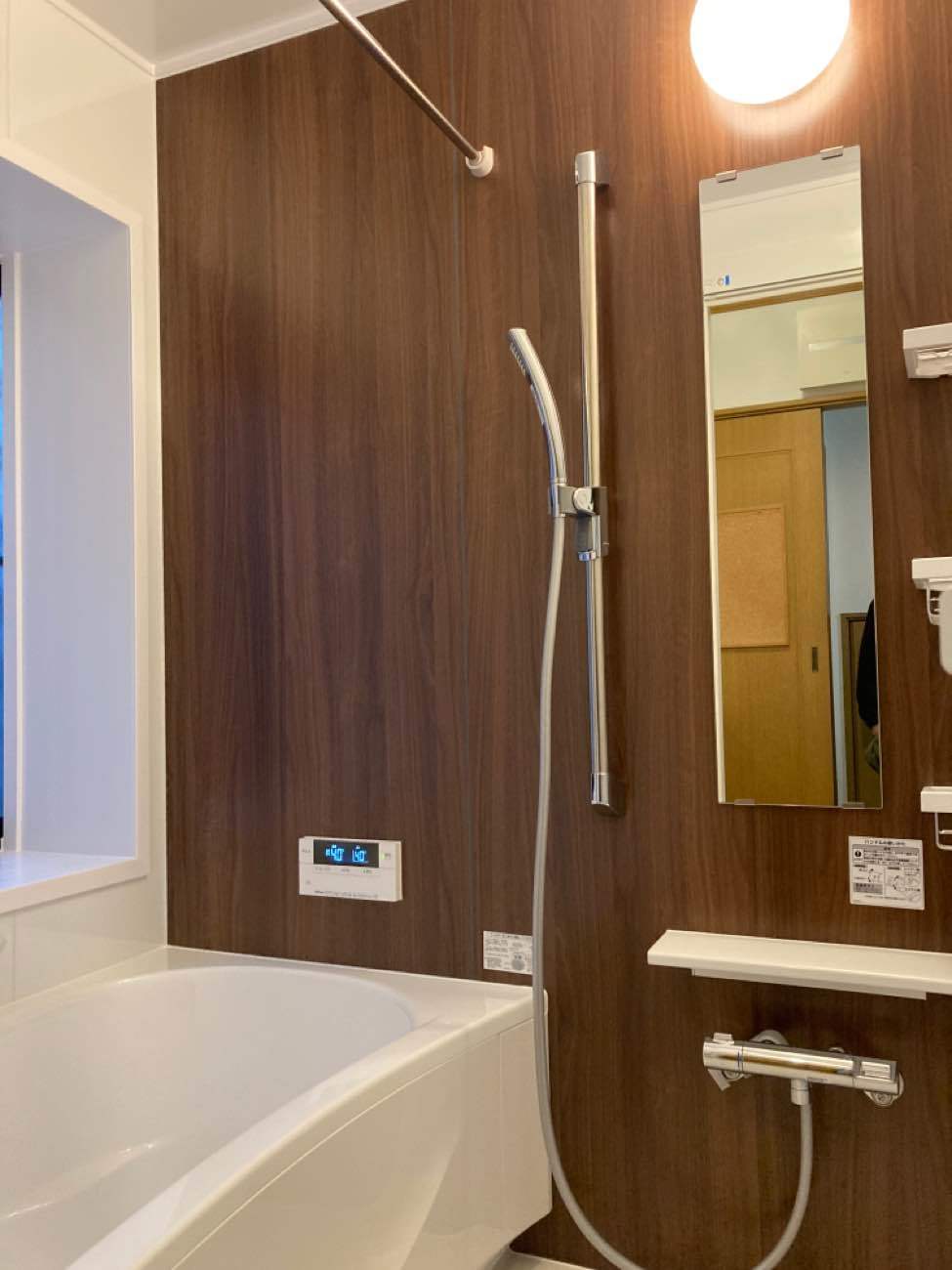 【After】新しいお風呂が完成しました。窓は2か所ありましたが、道路面の窓は隠蔽しました。