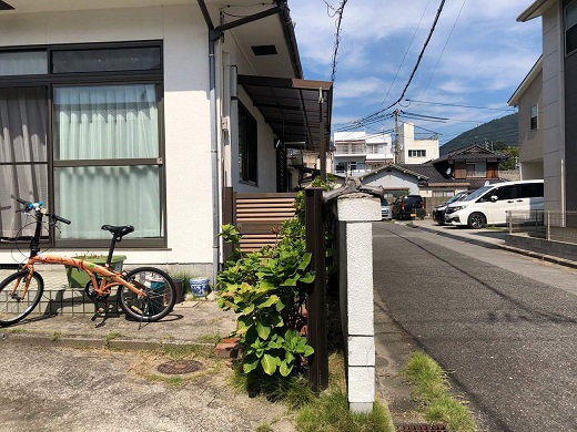 道路面のブロック塀と植栽はすべて撤去し、オープンに広く使えれるようにしています!
