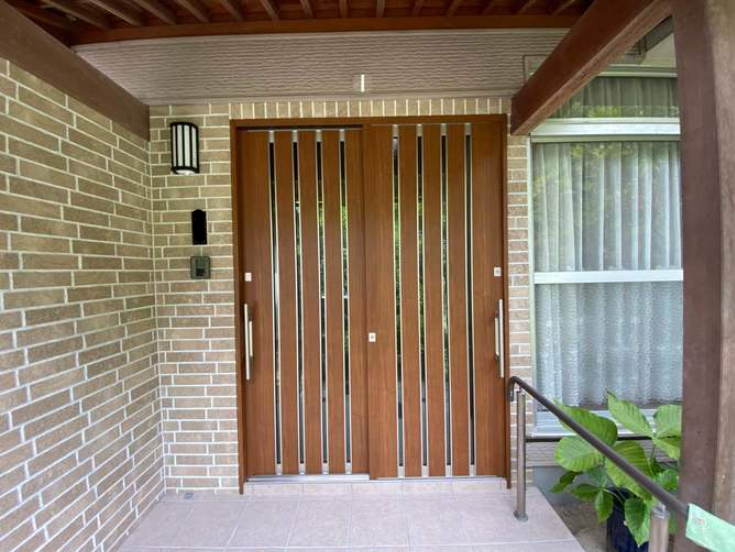 工事させて頂きました。もともと玄関ドアはそのままの予定でしたがお打合せを進めていく中で思い切って