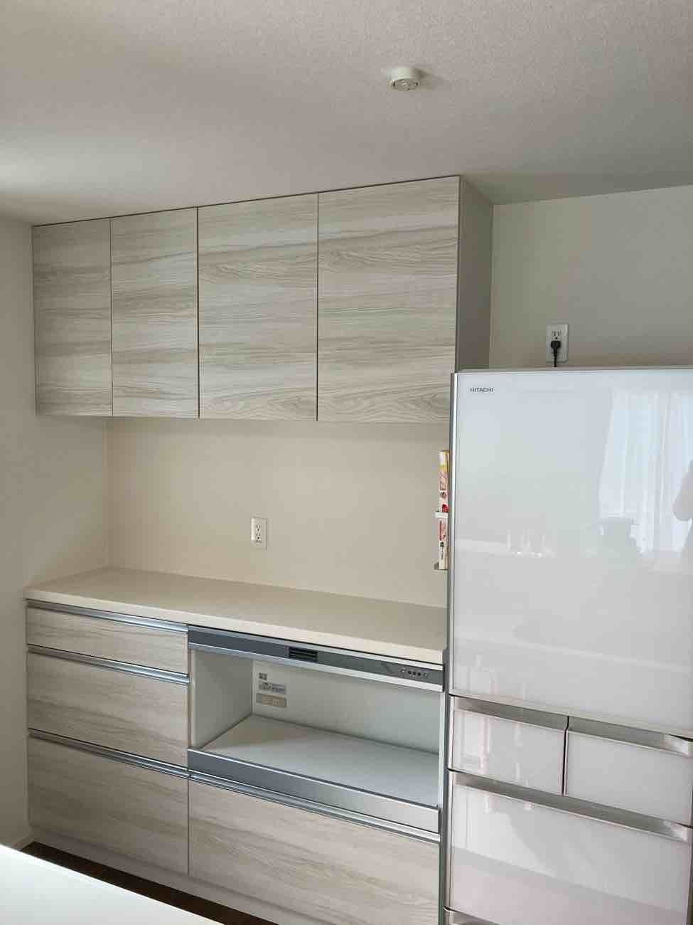 施工前にカップボードの寸法とコンセントの位置が