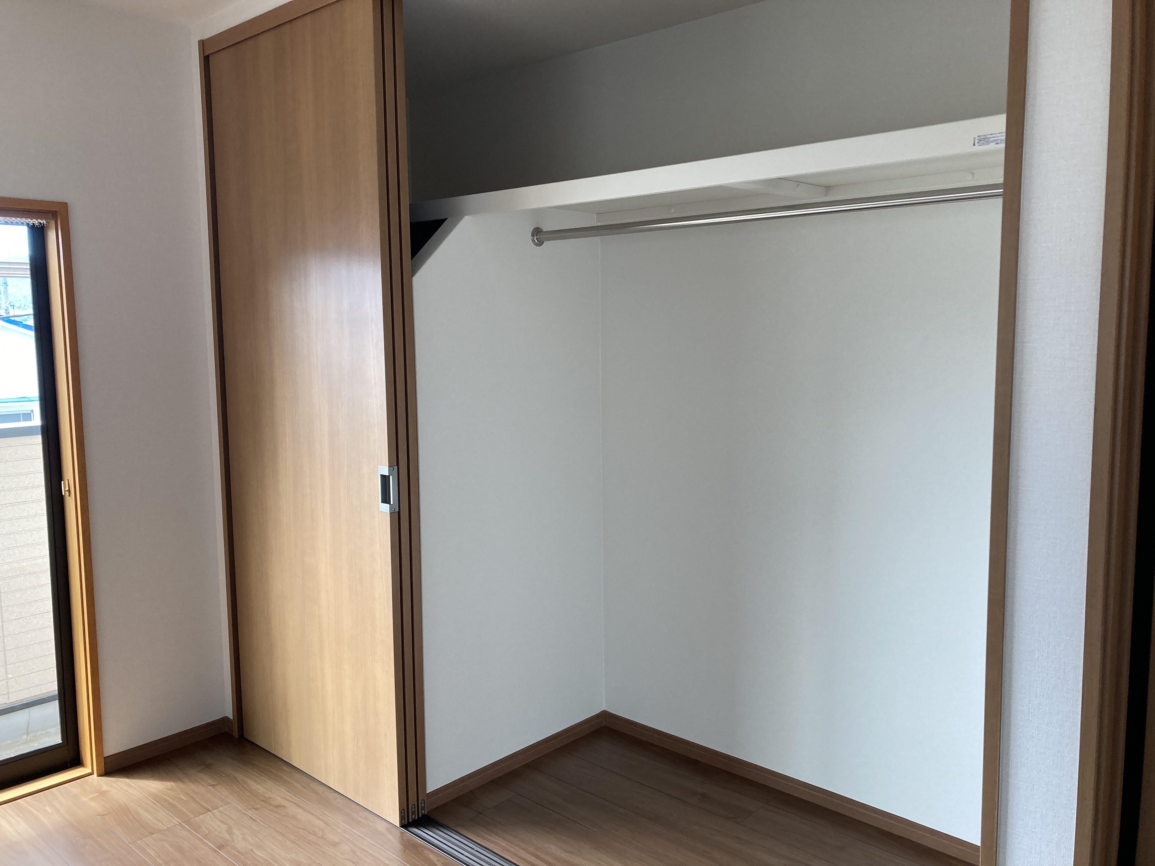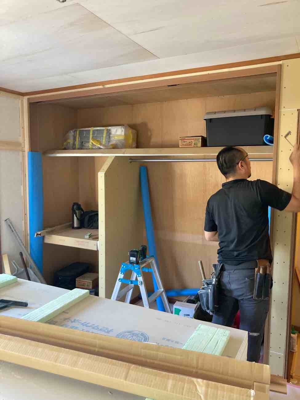押入をクローゼットに改修するにあたり、枕棚(上側の棚)は目いっぱい広げて、