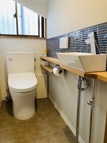今回は、もともとトイレに手洗がついてあるタイプから、手洗いカウンターを造作で新設し、壁紙や床材もすべてやり替えた内容の工事になっています!