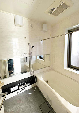 お掃除しやすく暖かいユニットバスへ取替。浴室暖房もつけたことでより快適な空間になりました。