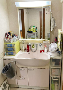 昔ながらの洗面台を新しくしたい。横のスペースを有効活用したい。