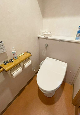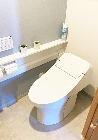 ワンデーリモデルを採用し、手洗い器付きのトイレに取り替えました。青いアクセントクロスを採用することで、爽やかな空間になりました。